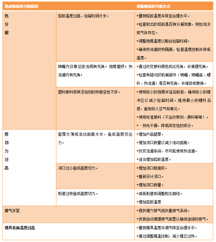 3) Szczególnie gorące części formy (takie jak rdzeń formy), modyfikatory/stabilizatory i inne dodatki mogą przyklejać się do powierzchni i powodować zanieczyszczenie formy. W takim przypadku należy podjąć działania w celu uzyskania lepszej kontroli temperatury formy lub zastosować specjalne stabilizatory.
