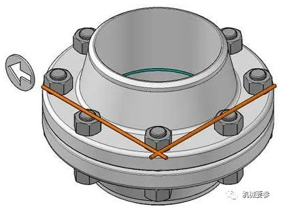 Oznacza to, że w przypadku pionowej powierzchni uszczelniającej kołnierza (powierzchnia kołnierza jest pionowa, a rurociąg przebiega poziomo) otwory pod śruby powinny obejmować obie strony linii pionowej i poziomej linii środkowej.