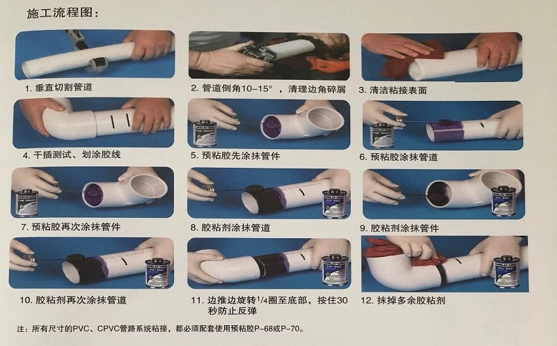Po połączeniu rur i kształtek należy penetrować sklejoną powierzchnię złącza i zmiękczyć ją środkiem czyszczącym, aby poprawić efekt topienia kleju rozpuszczalnikowego. Do nałożenia środka czyszczącego użyj aplikatora lub pędzla o średnicy mniej więcej połowy średnicy rury (nie używaj szmatki). Środek czyszczący nanieś równomiernie na zewnętrzną powierzchnię końcówki rury oraz wewnętrzną powierzchnię kielicha złączki. Wielkogabarytowe kształtki należy łączyć lub w razie potrzeby zwiększyć ilość i ilość aplikacji, aby zapewnić efekt zmiękczenia powierzchni.