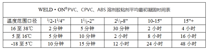 Uwaga: Czas początkowego wiązania odnosi się do czasu potrzebnego na ostrożne przesuwanie rury po sklejeniu. W przypadku mokrej lub wilgotnej pogody czas początkowego wiązania należy wydłużyć o 50%.