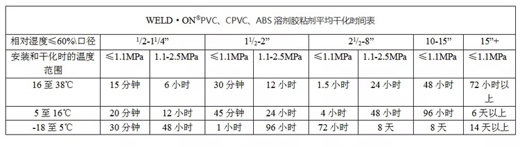 Uwaga: Czas schnięcia oznacza czas niezbędny do wywarcia ciśnienia po przyklejeniu rury i przy wilgotnej lub wilgotnej pogodzie czas schnięcia należy wydłużyć o 50%.