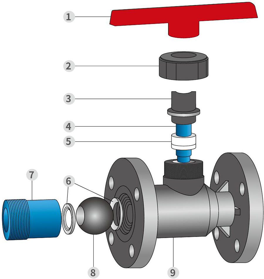 1. Inżynieryjny zawór kulowy z serii tworzyw sztucznych wykorzystuje FRPP, PVDF, PCV-C, PCV-U, PPH itp., odporne na korozję tworzywo termoplastyczne, które powstało w pojedynczym procesie formowania wtryskowego i ma dużą odporność na korozję.