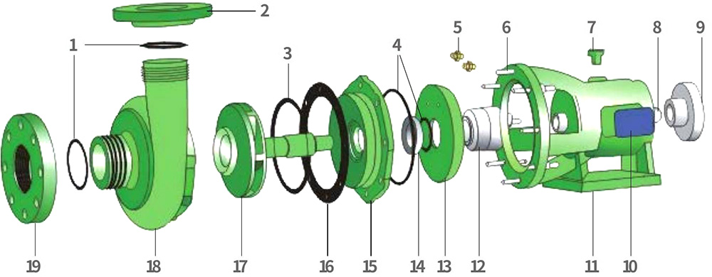 Nasza fabryka specjalizuje się w produkcji całkowicie plastikowych, odpornych na korozję i samozasysających pomp odśrodkowych z dwóch materiałów — PVDF i FRPP — w czterech seriach (FV, FP, FVZ, FPZ). Pompy PVDF nadają się do tłoczenia silnych kwasów, silnych utleniaczy, halogenów, węglowodorów aromatycznych, związków alifatycznych i chlorowanych rozpuszczalników w zakresie temperatur roboczych od -40°C do 140°C. Pompy FRPP idealnie nadają się do silnych zasad, a także ogólnych kwasów, zasad, soli i ich pochodnych, w zakresie temperatur roboczych od -40°C do 90°C. Pompy są zazwyczaj napędzane przez energooszczędne silniki typu Y. Na życzenie dostępne są silniki w wykonaniu przeciwwybuchowym.
