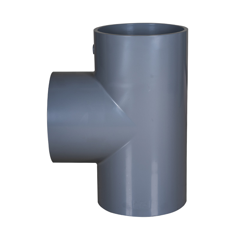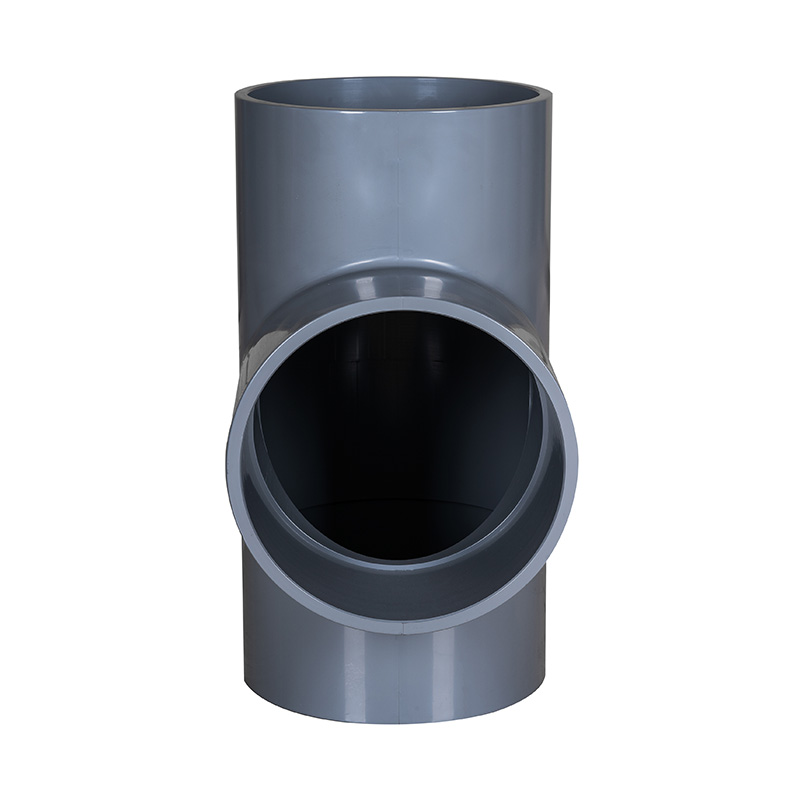 Cena fabryczna Jasnoszary Trójnik z PVC-C Złączki rurowe z tworzywa sztucznego o równym kształcie Złączki do rur wodnych DN15-DN600 Złączki trójnikowe proste do drenażu i urządzeń sanitarnych