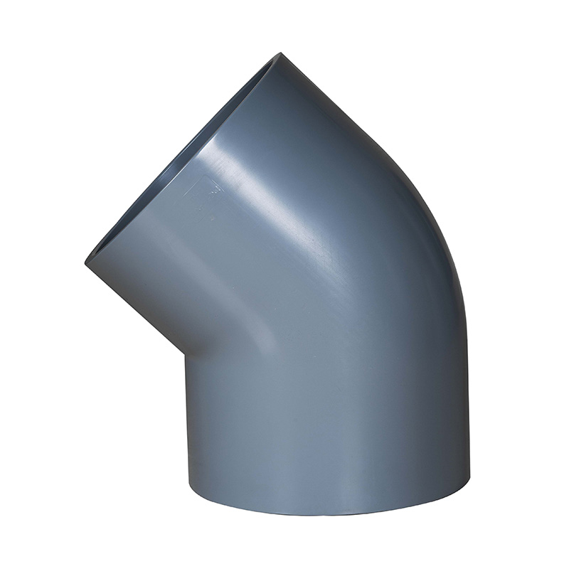 Super wytrzymałe, jasnoszare kolanko 45° z PVC-C, profesjonalne rozmiary standardowe DN15-DN600, złączka rurowa z kolankiem 45° z PVC-C, norma ANSI SCH80
