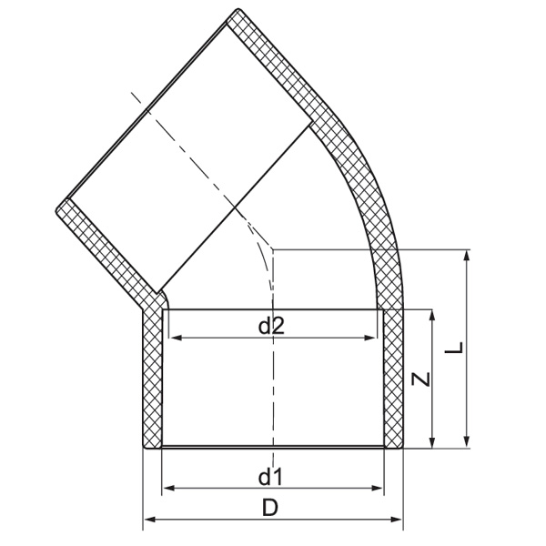 Kolanko 45° PVC-C DN15-600 1/2"-24" Norma ANSI