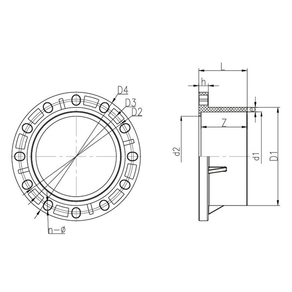 DN D1 D2 D3 D4 d1 d2 L Z e n-Ř