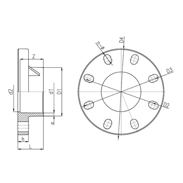 DN D1 D2 D3 D4 d1 d2 L h Z e n-Φ