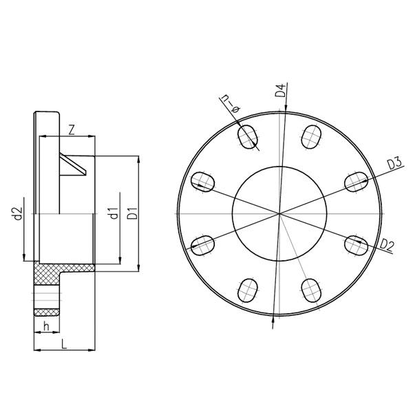 DN D1 D2 D3 D4 d1 d2 L h Z n-Ř