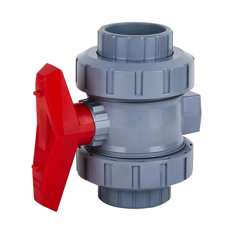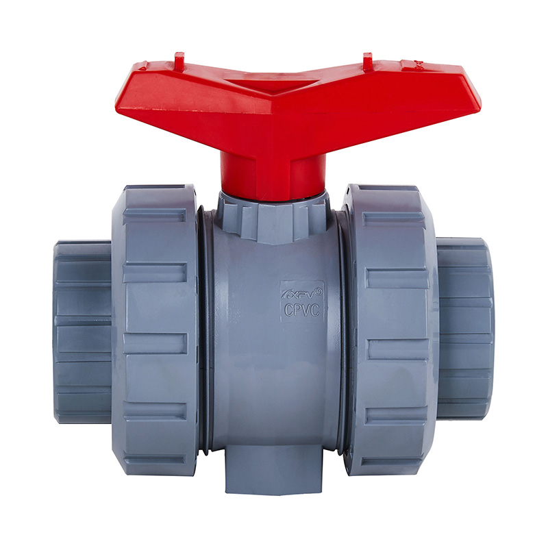 Niestandardowy zawór kulowy z podwójnym złączem z PVC-C do średnich temperatur DN15, DN80, DN100, ręczny, DN15–100 1,0–1,6 MPa Przemysłowy zawór z tworzywa sztucznego Standard ANSI