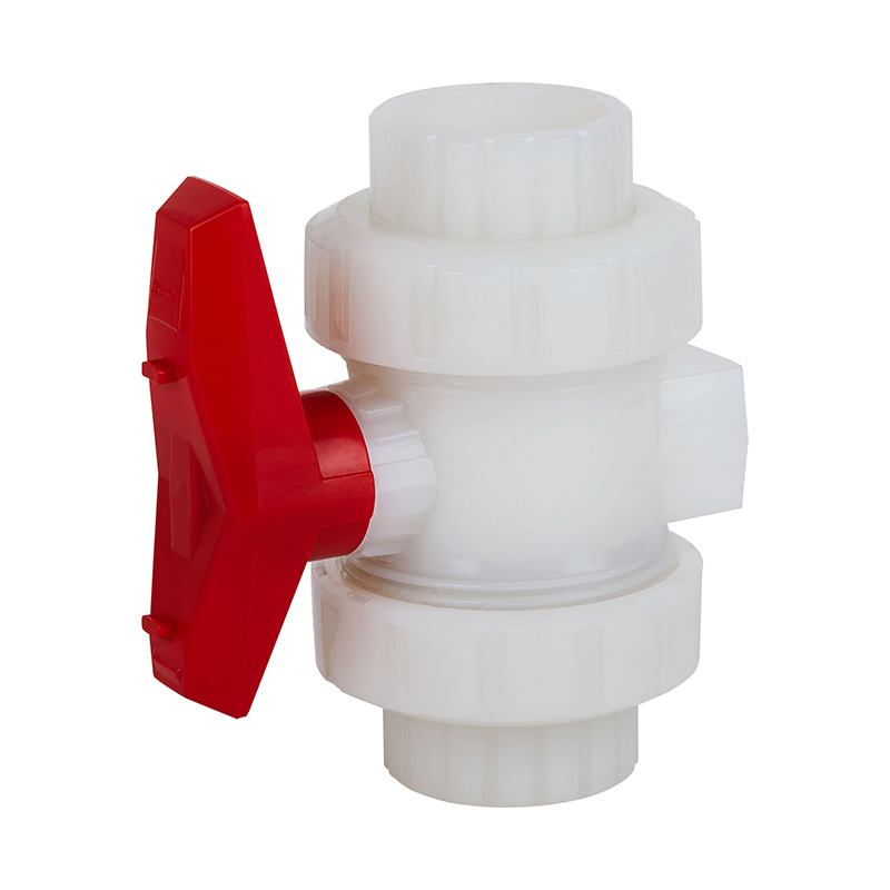 Biały, supertrwały, wysokotemperaturowy, wysokotemperaturowy 20 mm-110 mm Standardowy zawór kulowy z podwójnym gniazdem PVDF 1,0-1,6Mpa ISO STD Standardowy zawór plastikowy przemysłowy
