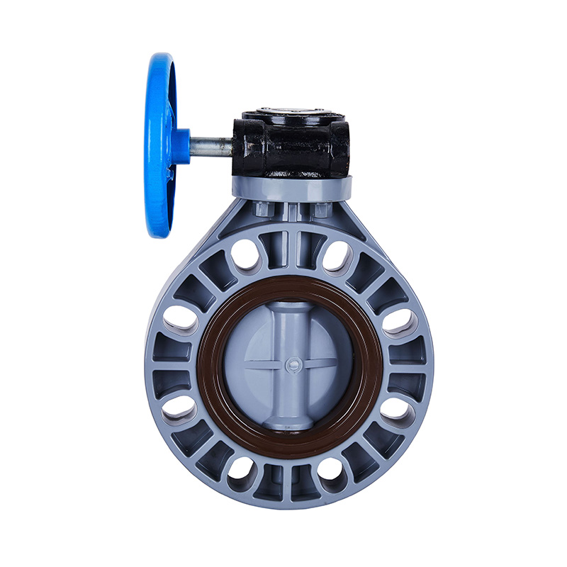 Niestandardowy, fabrycznie nowy przekładnia ślimakowa z PVC-C, gładki trzpień, przepustnica DN40–1000, szary, DIN, JIS, norma ANSI, 4-calowy zawór kołnierzowy z tworzywa sztucznego, norma ANSI