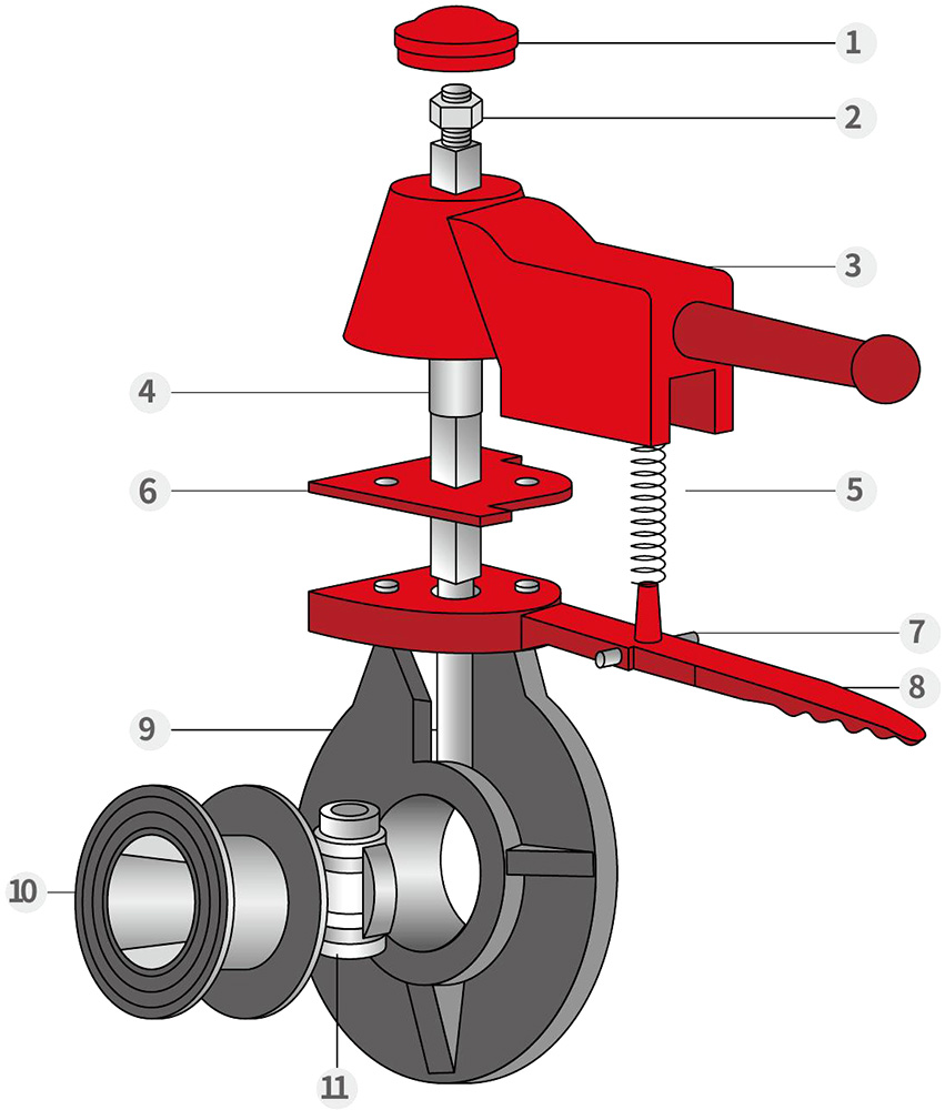 Rysunek szczegółowy zespołu zaworu motylkowego uchwytu