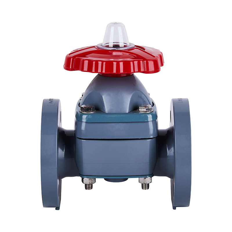 Bardzo wytrzymały, ręczny zawór membranowy z kołnierzem PVC-C do wysokich temperatur, do kwaśnych płynów i zaopatrzenia w wodę, standard JIS