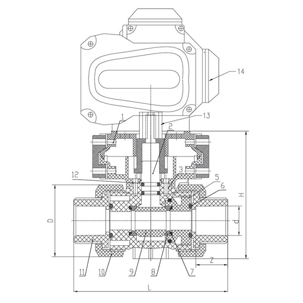 1. Te techniczne zawory kulowe z tworzywa sztucznego są formowane wtryskowo w jednym kawałku przy użyciu odpornych na korozję tworzyw termoplastycznych, takich jak FRPP, PVDF, PVC-C, PVC-U i PPH, zapewniających dużą odporność na korozję.