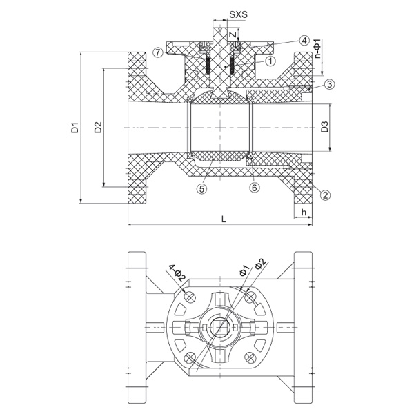 Specyfikacja D1 (mm) D2(mm) D3(mm) L(mm) h(mm) n-Φ1 (mm) Φ1(mm) Φ2(mm) SXS(mm) 4-Φ2 (mm) Z(mm)
