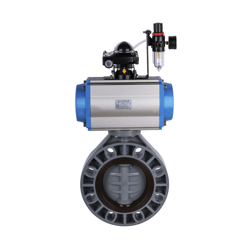 Przepustnica uruchamiana pneumatycznie z PVC-C, z uszczelką środkową, miękką uszczelką DN32-1000, przepustnica z tworzywa sztucznego do zastosowań przemysłowych i mieszkaniowych Standard ANSI