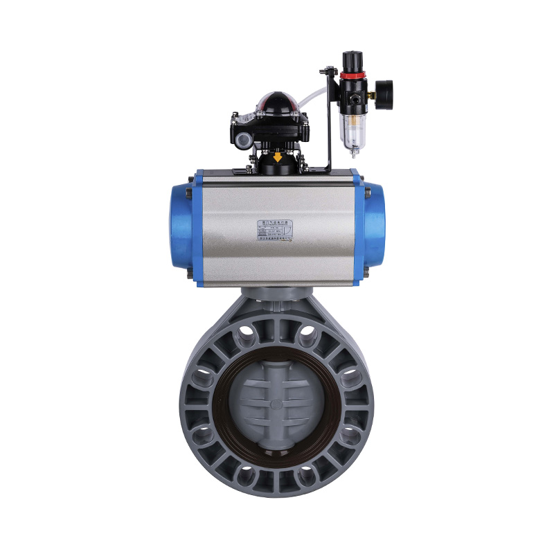Pneumatyczny automatyczny zawór motylkowy z PVC-C, miękkie uszczelnienie centralne, DN40-1000, plastikowy zawór przemysłowy i domowy, standard JIS