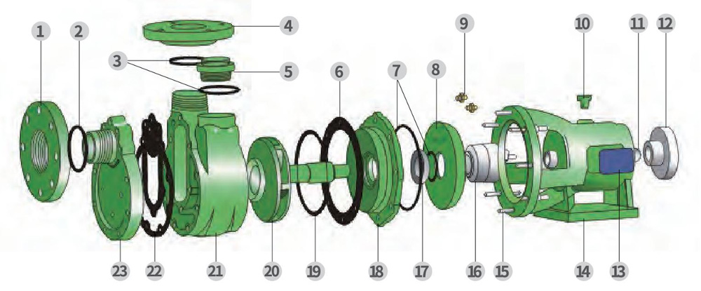 Nasza fabryka specjalizuje się w produkcji całkowicie plastikowych, odpornych na korozję i samozasysających pomp odśrodkowych z dwóch materiałów — PVDF i FRPP — w czterech seriach (FV, FP, FVZ, FPZ). Pompy PVDF nadają się do tłoczenia silnych kwasów, silnych utleniaczy, halogenów, węglowodorów aromatycznych, związków alifatycznych i chlorowanych rozpuszczalników w zakresie temperatur roboczych od -40°C do 140°C. Pompy FRPP idealnie nadają się do silnych zasad, a także ogólnych kwasów, zasad, soli i ich pochodnych, w zakresie temperatur roboczych od -40°C do 90°C. Pompy są zazwyczaj napędzane przez energooszczędne silniki typu Y. Na życzenie dostępne są silniki w wykonaniu przeciwwybuchowym.
